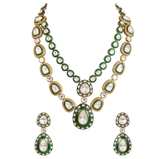 Green Meenakari Kundan Polki Necklace Set with Earrings | Bridal & Festive Jewelry