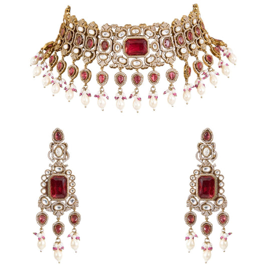 Bridal Kundan Choker Necklace Set with Ruby Red Stones & Earrings