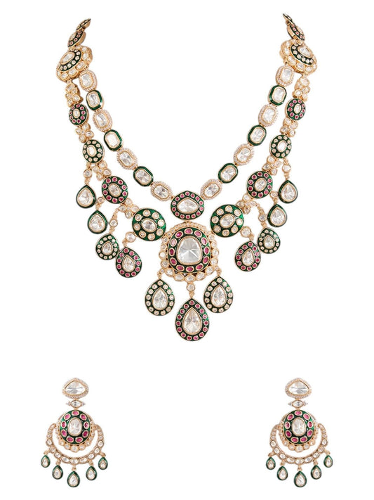 Regal Emerald and Polki Crystal Necklace Set with Coordinate Earrings