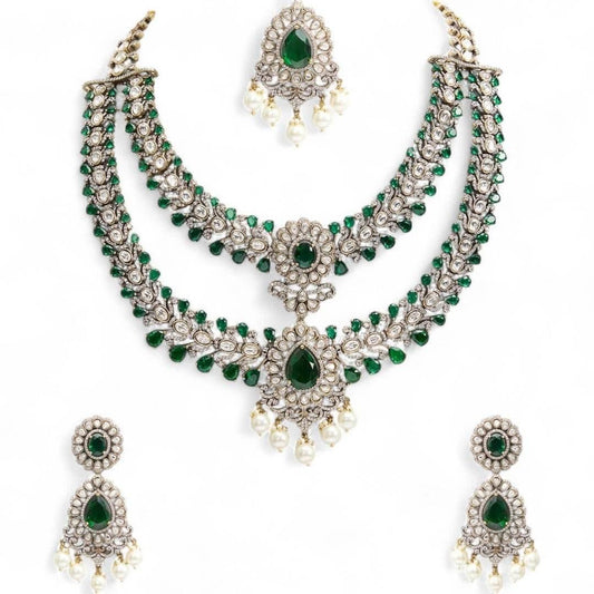 Emerald Royale Layered Necklace Set with Earrings
