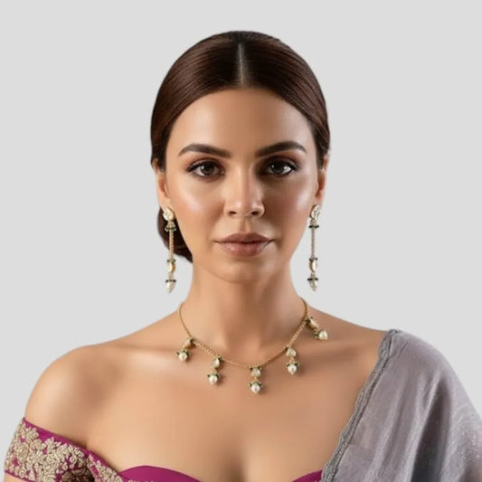 Explore our stunning Necklace Set Collection, featuring intricate designs that blend elegance with tradition. From classic pearls to modern Kundan, Polki, and gemstone sets, each piece is crafted to elevate your look for weddings, parties, and special occasions. Whether you're looking for a statement piece or a subtle accent, our collection has something for every style. Discover timeless beauty with every necklace.