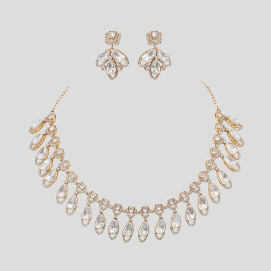 Gold-Plated White AD Stone Bridal Necklace Set with Earrings