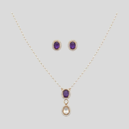Elegant Amethyst & Crystal Drop Pendant Necklace with Matching Stud Earrings