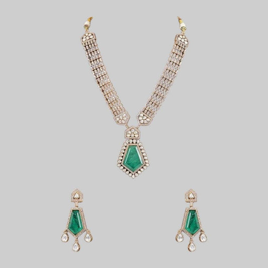 Elegant Emerald Green Stone Necklace Set with Earrings for Women