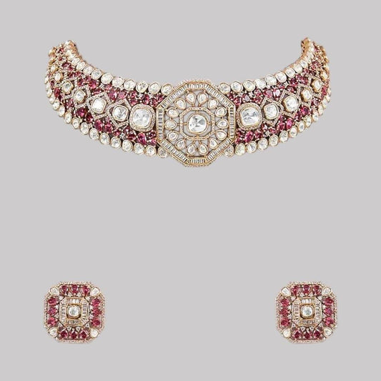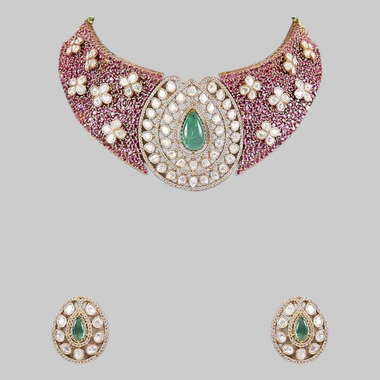 Designer Multicolor Polki Kundan Choker Necklace Set with Earrings for Women