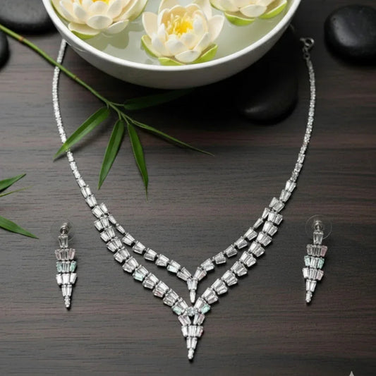 Elegant American Diamond Necklace Set with Earrings for Women