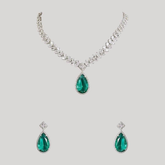 Emerald Green Teardrop Necklace Set with Matching Earrings