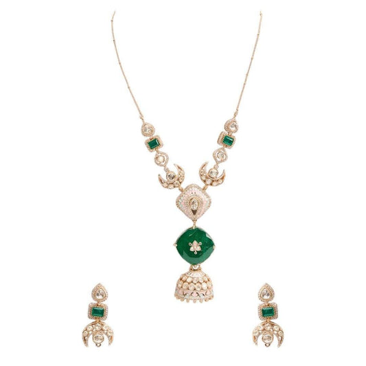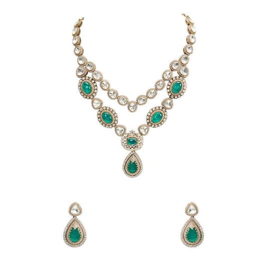 Regal Emerald and Polki Crystal Necklace Set with Coordinate Earrings