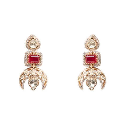 Ruby Red Temple Pendant Necklace Set – Kundan Jhumka Motif Design
