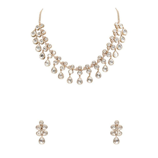 Sophisticated Polki Crystal Drop Necklace Set with Flower Stud Earrings