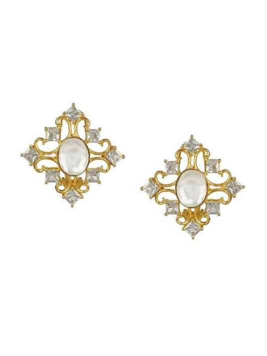 White Contemporary Kundan Studs Earrings
