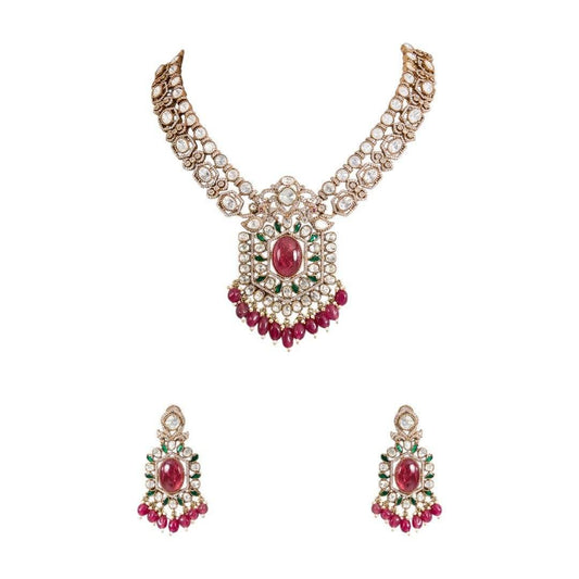Beautiful Ruby Kundan Necklace Set with Designer Stud Earrings and Pearl Embellishments