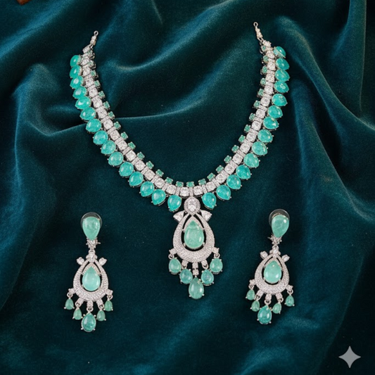 Silver & Green CZ Stone-Plated Designer Necklace Set for Women