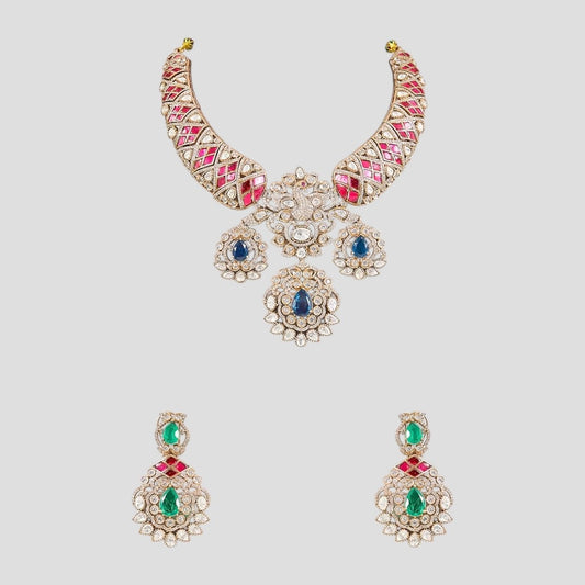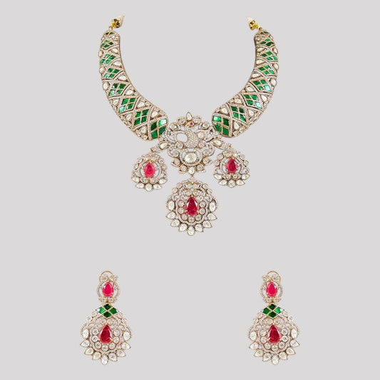 Luxury Gold-Plated Ruby & Emerald Stone Studded Designer Necklace Set for Women