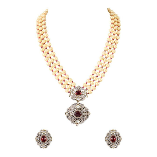 Stunning Triple-Layer Pearl Necklace Set with Antique Kundan Pendant and Earrings