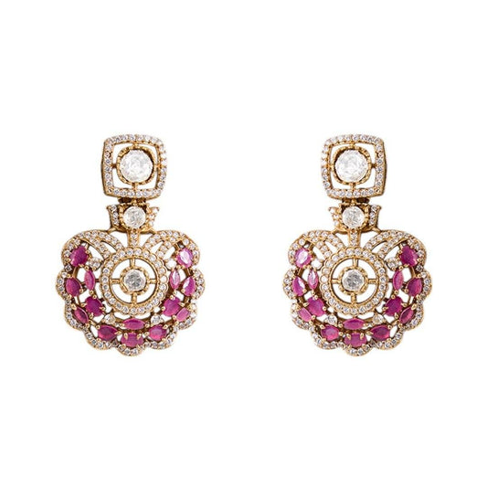 Royal Kundan Necklace Set with Ruby Red Drops and Green Accents