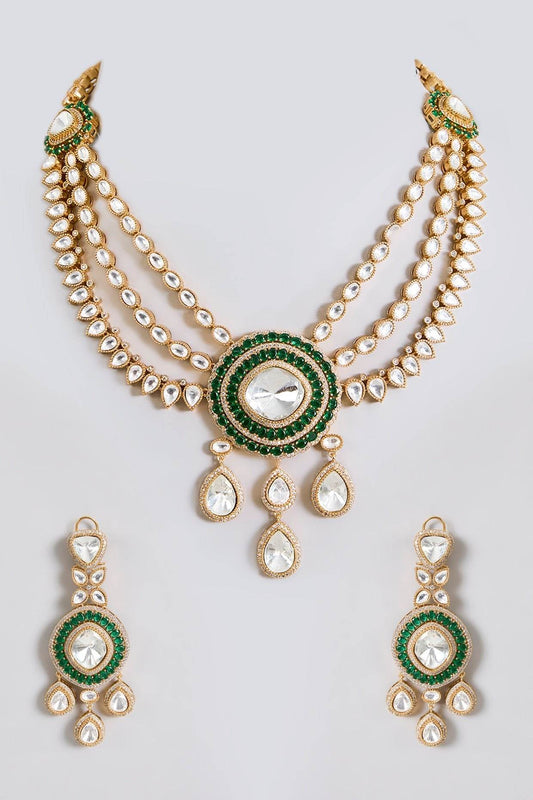 Royal Green Kundan Emerald Drop Bridal Necklace Set