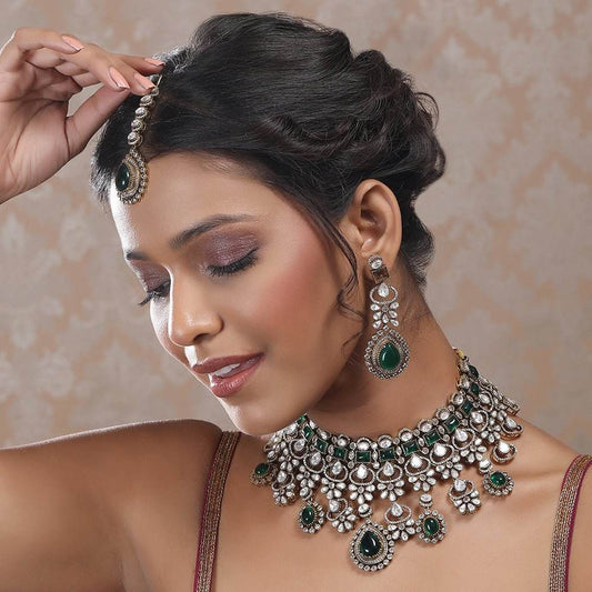 Exquisite Kundan Bridal Choker Necklace Set with Maangtikka