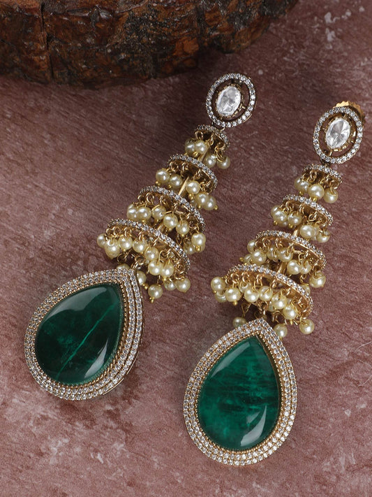Green Kundan Beaded Rani Haar Necklace Set with Matching Earrings