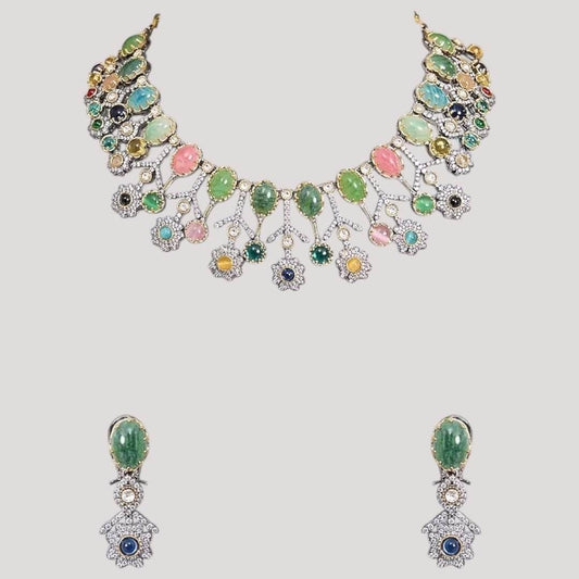 Designer Multicolor Polki Kundan Choker Necklace Set with Earrings for Women
