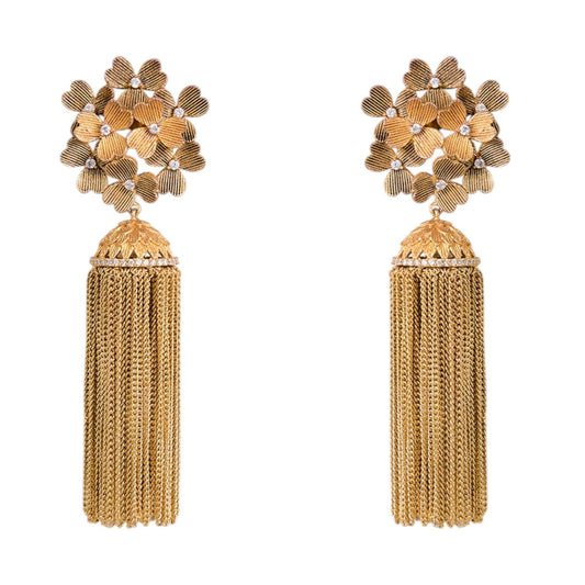 Gold-Plated Floral Tassel Earrings for Women Long Chain Drop Statement Danglers