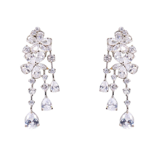 Rhodium-Plated American Diamond Floral Drop Earrings for Women