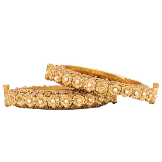 Traditional Gold-Plated Pearl Floral Bangles for Women