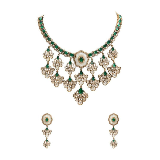 Regal Emerald and Polki Crystal Necklace Set with Coordinate Earrings