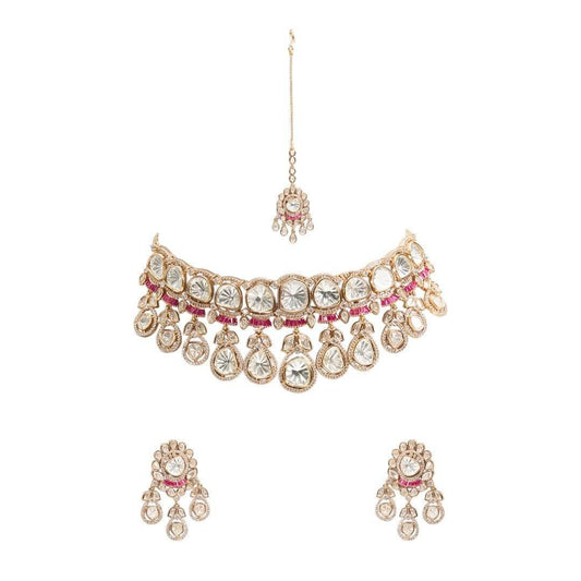 Kundan Maang Tikka Bridal Choker Set – Ruby Accented Gold-Toned Jewelry
