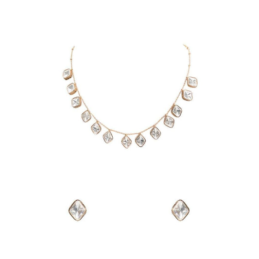 Minimalist Square Polki Necklace Set with Matching Stud Earrings