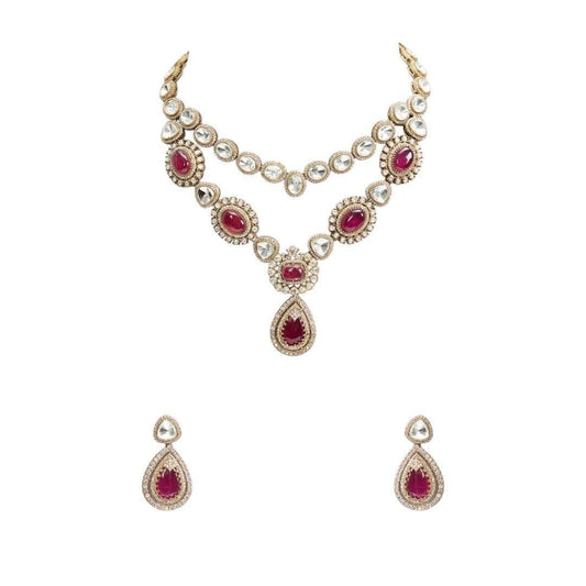 Regal Ruby Kundan Necklace Set – Dual-Layer Necklace with Earrings