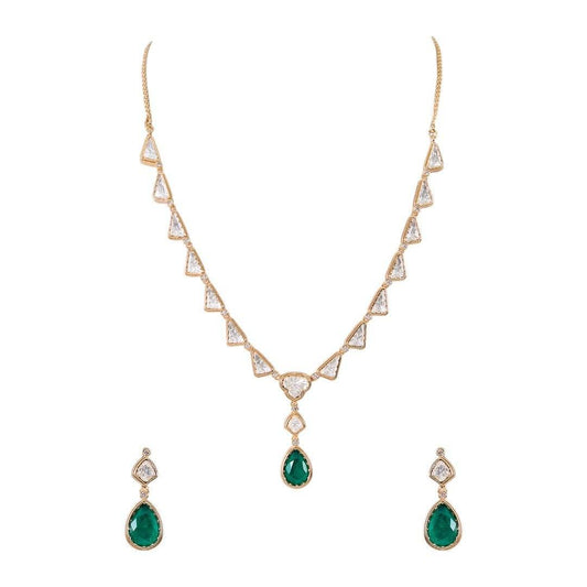 Sophisticated Kundan Necklace Set with Emerald Green Drop Pair of Matching Earrings