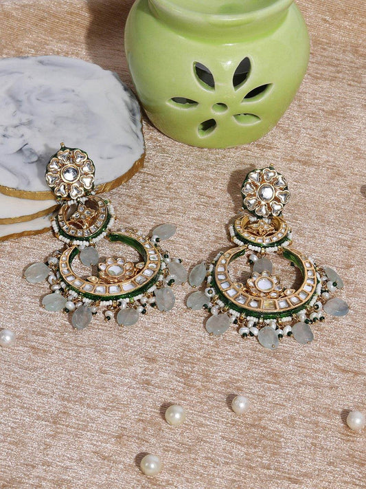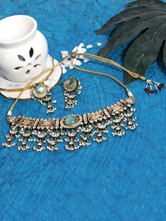 Grand Silver Green & Red Pearl Drops Kundan Choker Necklace set