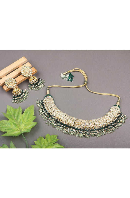 Gold-Plated Chandbali Necklace Set with Pearls and Green Accents