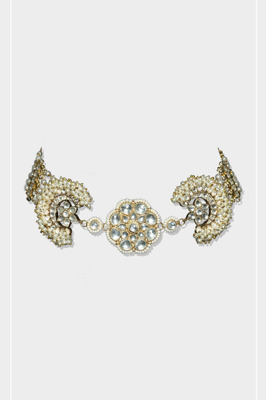 Traditional Moissanite Gold-Tone Kundan Bracelet
