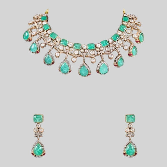 Elegant Emerald Green Stone Necklace Set with Earrings for Women