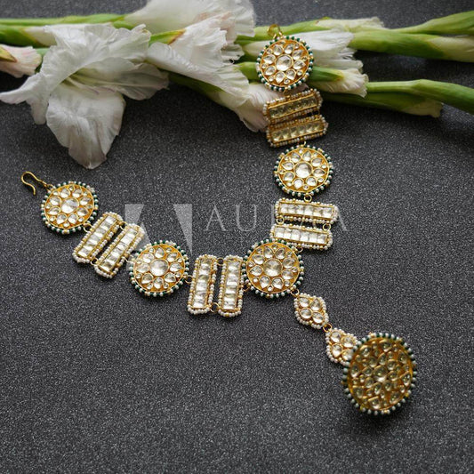 Gold-Plated Kundan Mathapatti & Headband