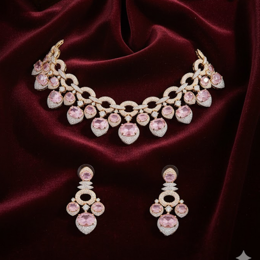 Pink CZ & Gold-Plated Stone-Studded Choker Necklace Set for Women