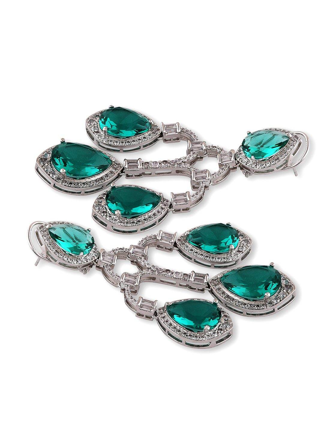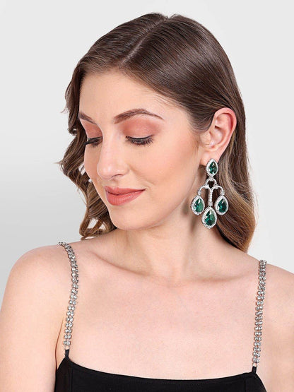 Enhance your elegance with these American Diamond Zircon Chandelier Earrings. Featuring stunning green zircon stones paired with brilliant American diamonds, these earrings are a masterpiece of luxury. The chandelier design adds a touch of glamour, making them the perfect accessory for formal events, weddings, and special occasions. With their intricate craftsmanship and dazzling shine, they are sure to make a statement.