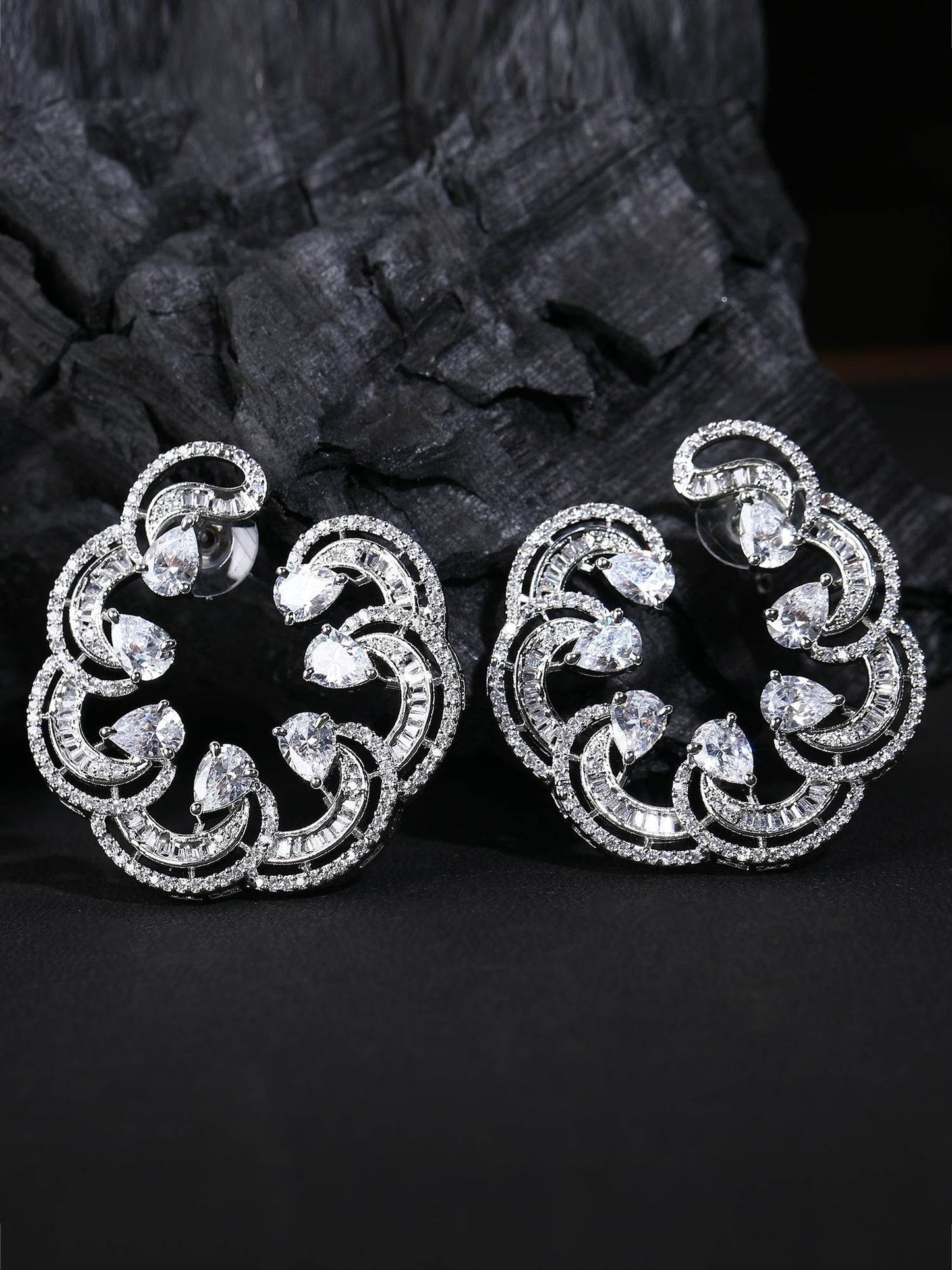 Rhodium-Plated American Diamond Zircon Stud Earrings